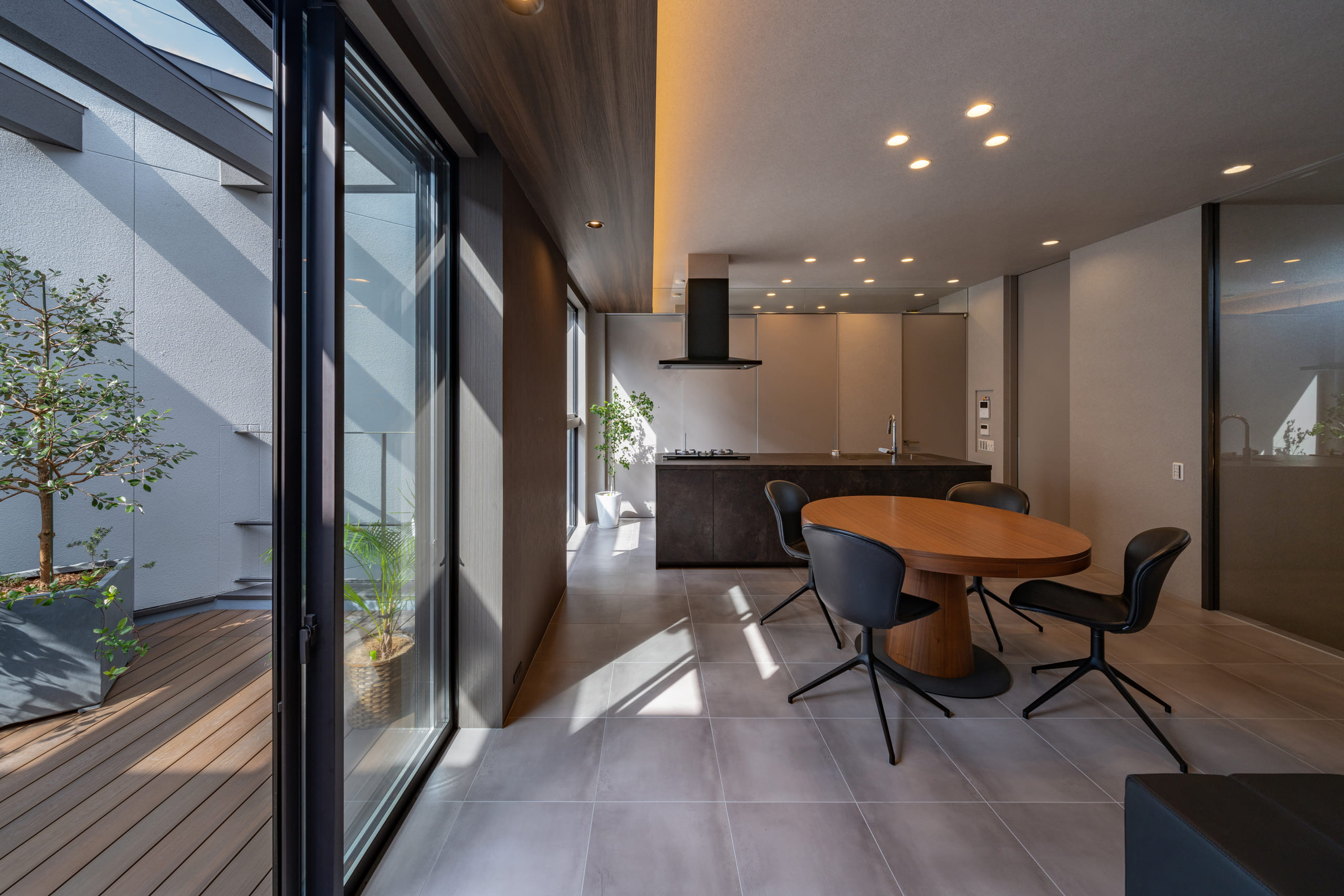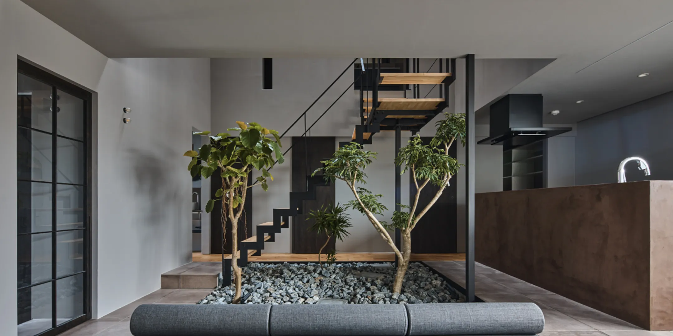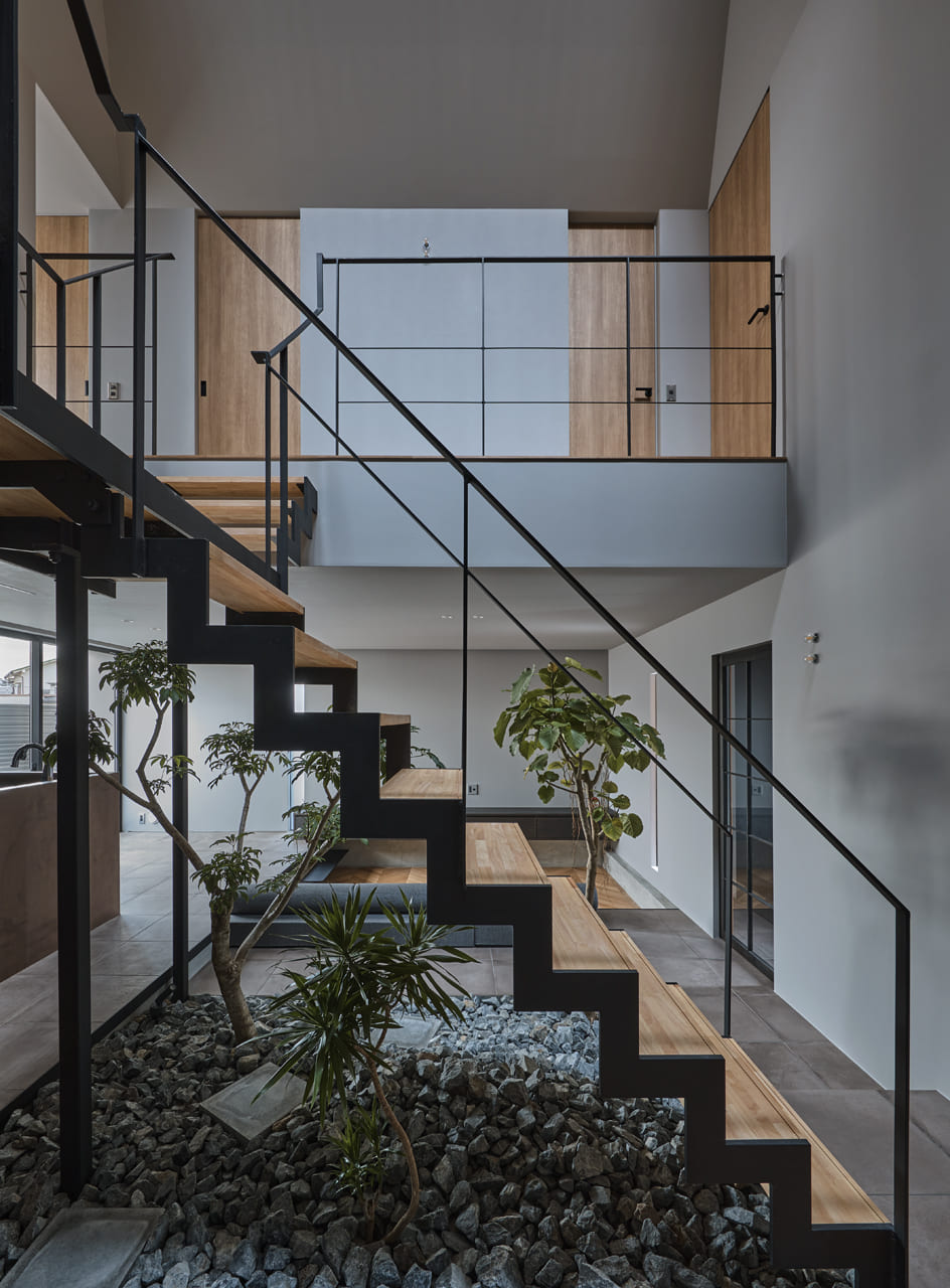 中庭を中心に家族が集う家