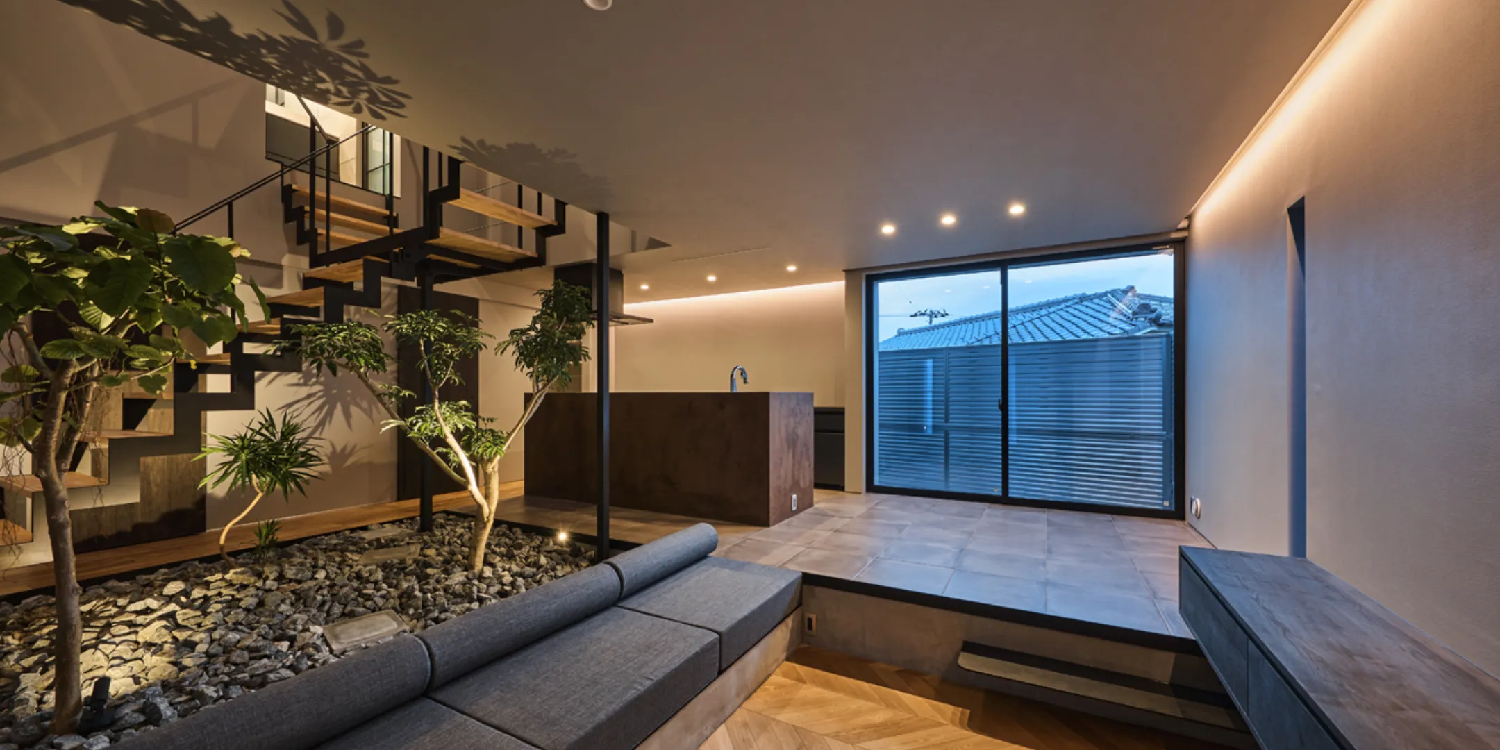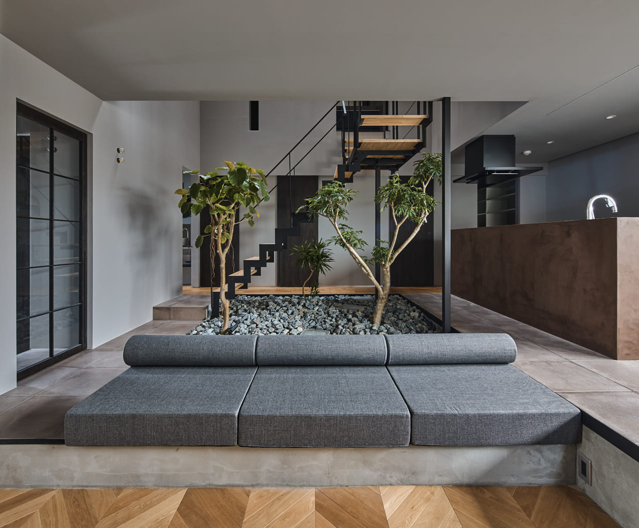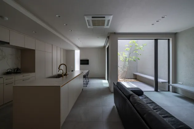 中庭を中心に家族が集う家