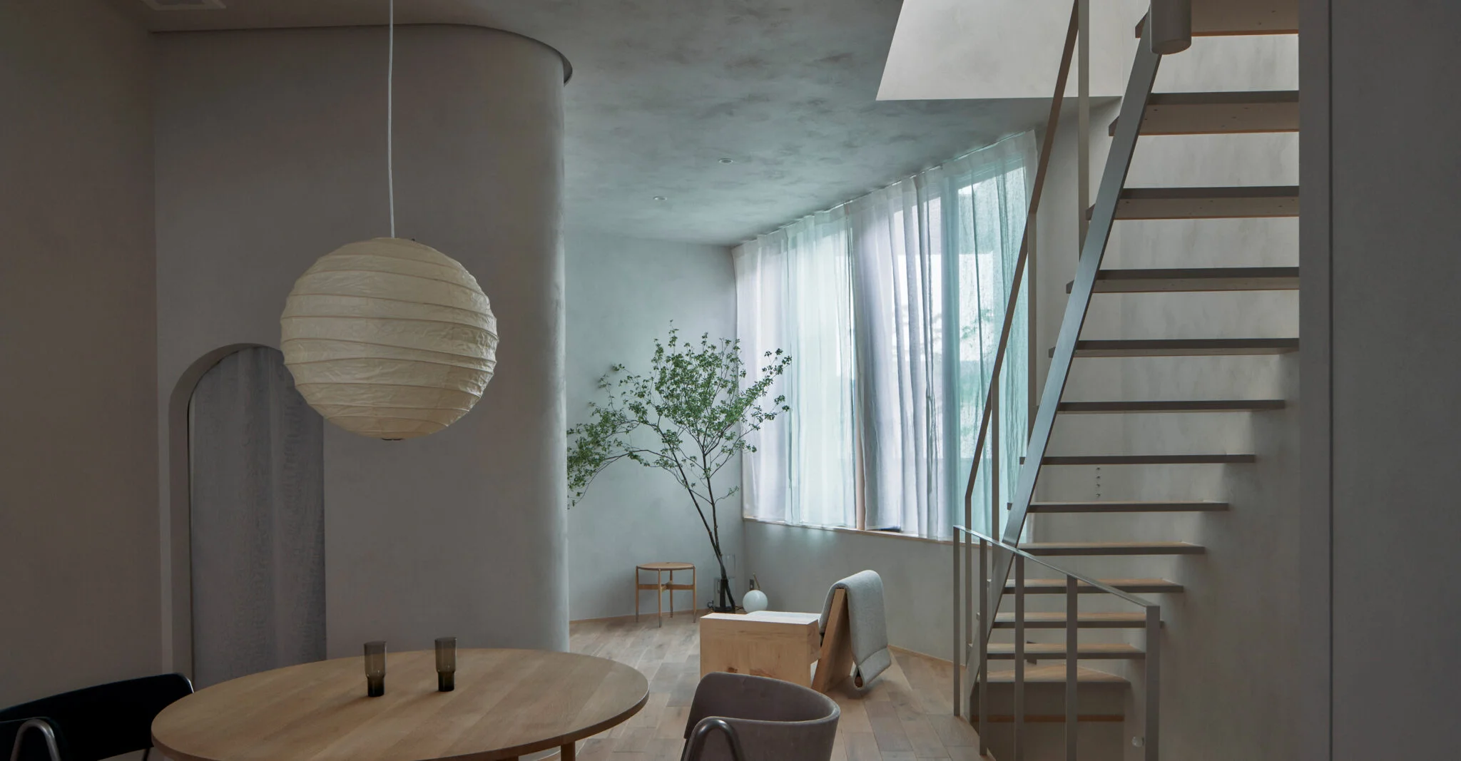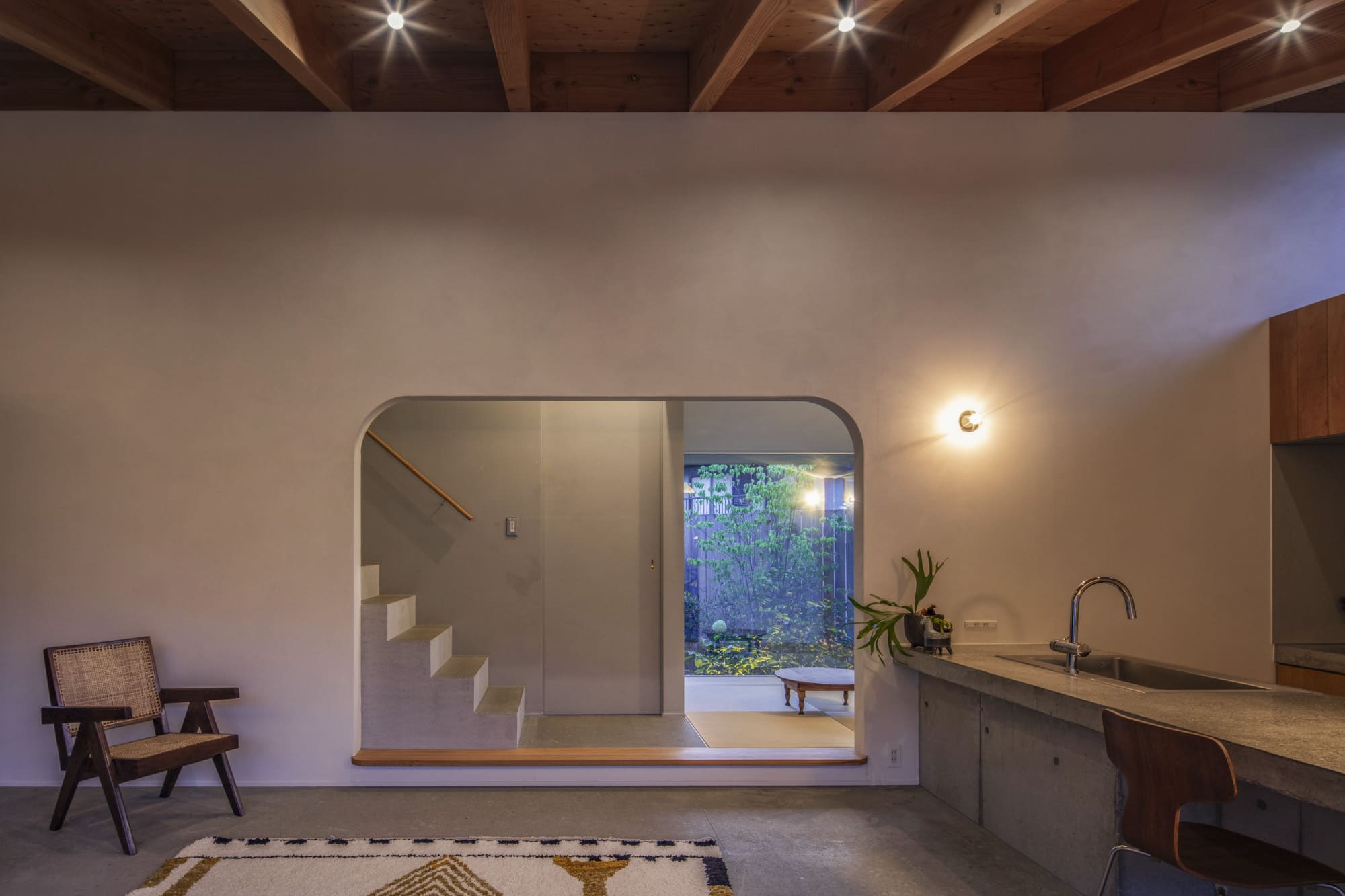 この家を一言で言うと…「洞窟」。 外の世界と切り離された異空間。 階段は上下を行き来するだけではなく地形の一部のようにも感じられます。 上の階は明るくて風…
